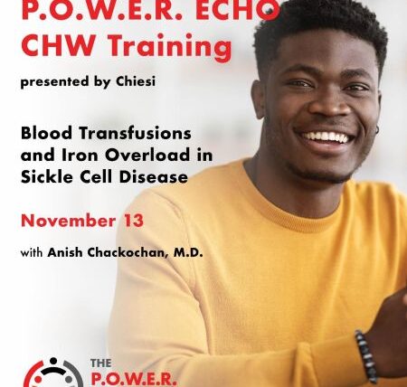 Join the upcoming online P.O.W.E.R. ECHO Community Health Worker Training presented by Chiesi and led by Senior Medical Science Liaison, Dr. Anish Chackochan. This essential session on “Blood Transfusions and Iron Overload in Sickle Cell Disease” is designed to provide additional resources and educational tools to strengthen the efforts of CHWs working in the SCD community.